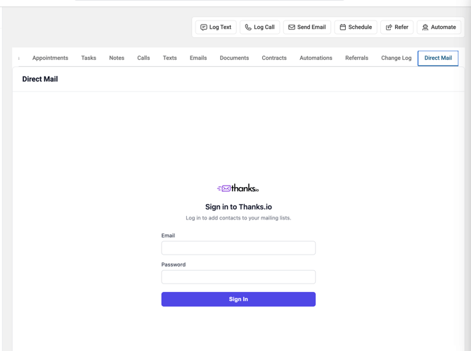 - Enter your thanks.io credentials and click Sign In