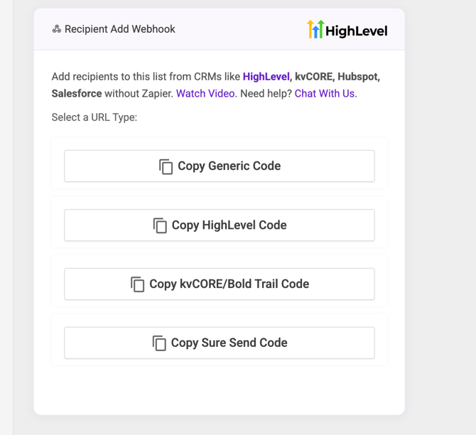 - Go to: https://suresend.ai/settings/webhooks